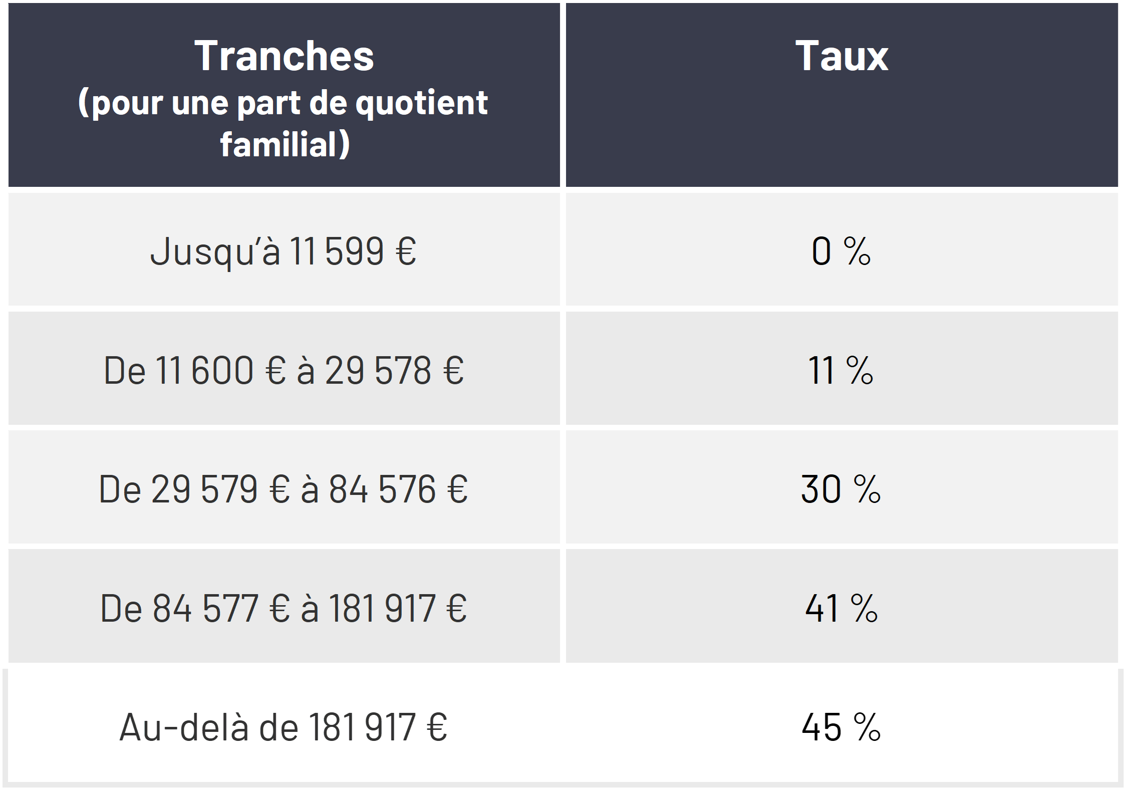 Le barème de l’IR applicable aux revenus de 2025 (à déclarer en 2026) est donc le suivant :