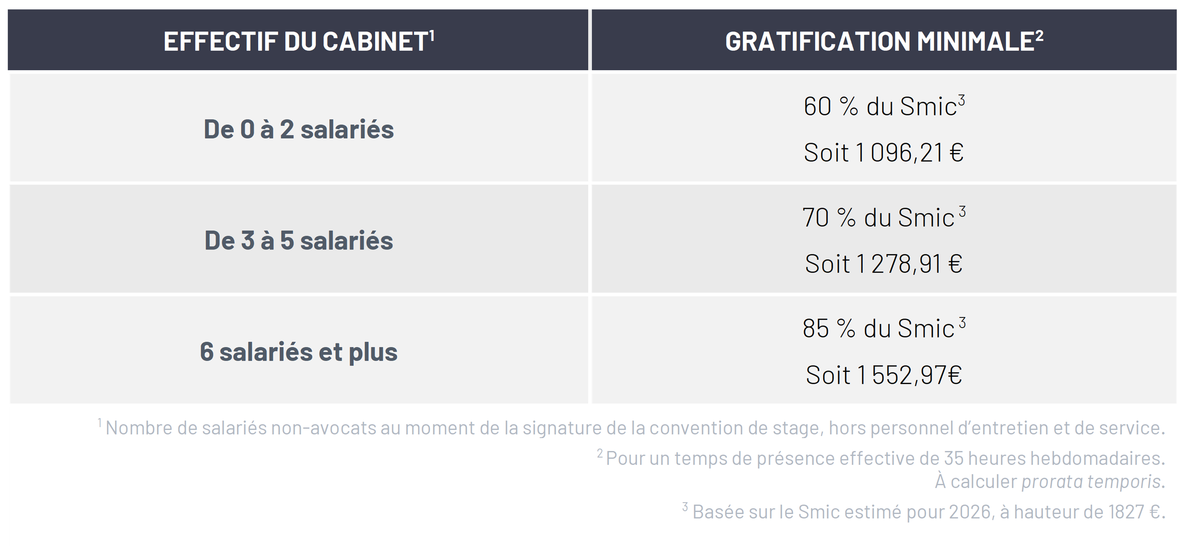 Stagiaires en cabinet d’avocats : Quelle gratification verser en 2026 ?
